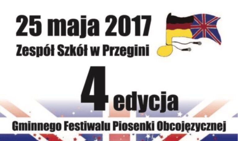 Już w najbliższy czwartek, tj. 25 maja 2017 r. Fundacja EKON wesprze 4 edycję Gminnego Festiwalu Piosenki Obcojęzycznej organizowaną w Zespole Szkół w Przegini.