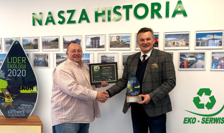 Firma „Ekoserwis Marcin Łysiak” została uhonorowana przez Fundację EKON tytułem „LIDERA EKOLOGII 2020” za wkład na rzecz budowy gospodarki niskoemisyjnej i zasobooszczędnej. Nagroda „LIDERA EKOLOGII” jest przyznawana firmom, które podejmują kompleksowe działania na rzecz zrównoważonego rozwoju, propagowania gospodarki..