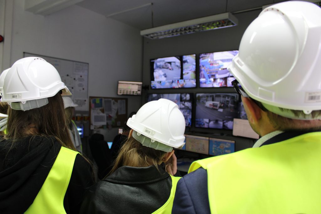 Młodzież aktywnie uczestniczyła w wykładzie Pani Barbary Farmas –  Wiceprezes Zarządu, która opowiedziała o funkcjonowaniu spalarni, rodzajach przyjmowanych odpadów oraz o całej procedurze ich transportu i przetwarzania. Omówiła również potencjalne zagrożenia wynikające z nieprawidłowego przygotowania odpadów do utylizacji. Kolejnym punktem wizyty było przejście do laboratorium zakładowego, gdzie  specjalista do spraw analiz chemicznych przedstawił, jak testowane są odpady przed ich przyjęciem do spalarni. Wizyta zakończyła się w pomieszczeniu dyspozytorni, gdzie uczestnicy obserwowali proces przetwarzania odpadów na ekranach monitorujących poszczególne etapy pracy zakładu.