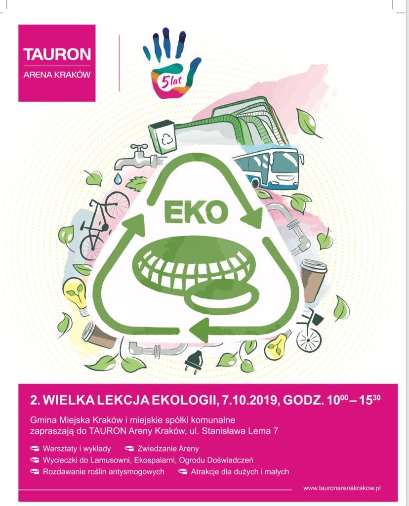 7 października 2019 w Tauron Arenie Kraków, Fundacja Ekon miała przyjemność wzięcia udziału w II Edycji Wielkiej Lekcji Ekologii organizowanej przez Gminę Miejską Kraków oraz Agencję Rozwoju Miasta S.A.