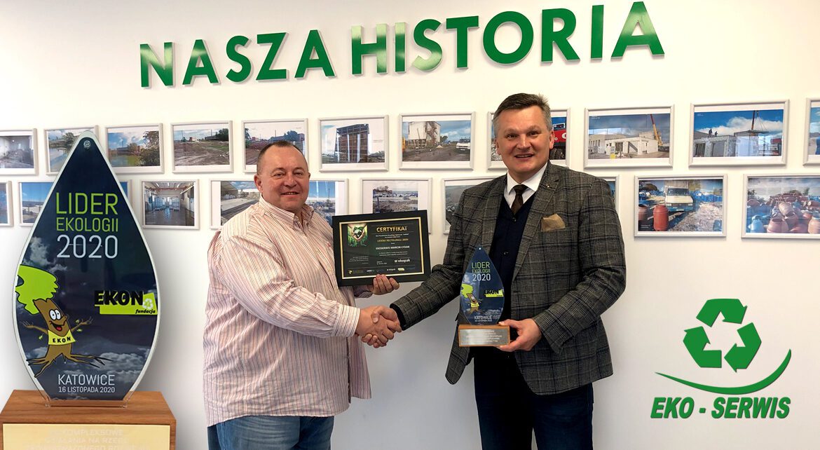 Firma „Ekoserwis Marcin Łysiak” została uhonorowana przez Fundację EKON tytułem „LIDERA EKOLOGII 2020” za wkład na rzecz budowy gospodarki niskoemisyjnej i zasobooszczędnej.