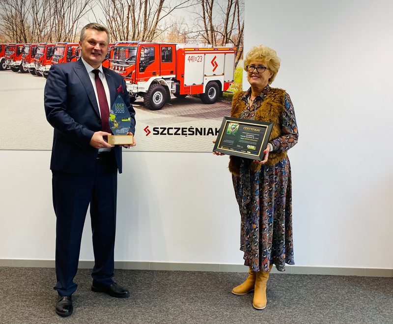 W dniu 18 listopada 2020 roku Fundacja EKON, jako organizator „eko – kampanii społecznej EKON” (www.kampania-ekon.pl), miała zaszczyt uhonorować firmę SZCZĘŚNIAK Pojazdy Specjalne Sp. z o.o. tytułem „LIDERA EKOLOGII 2020”za wkład na rzecz budowy gospodarki niskoemisyjnej i zasobooszczędnej.