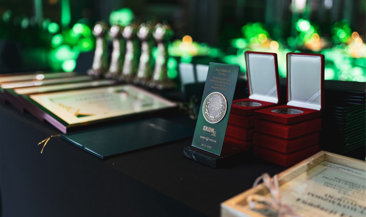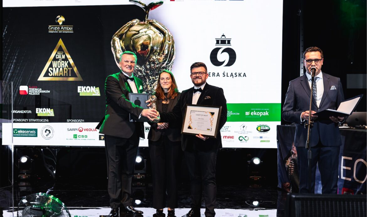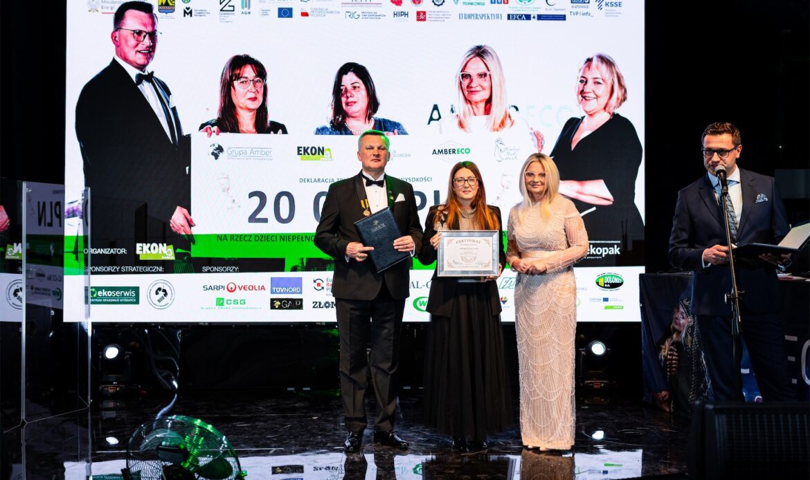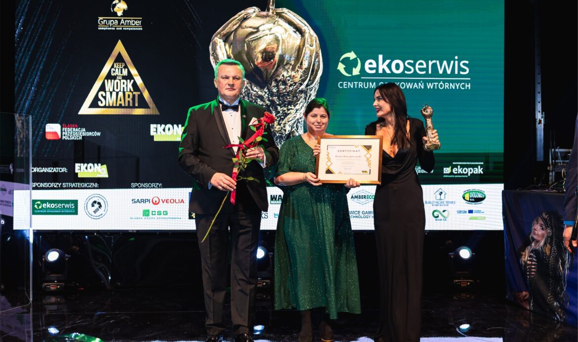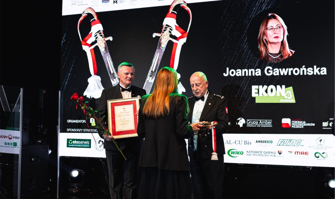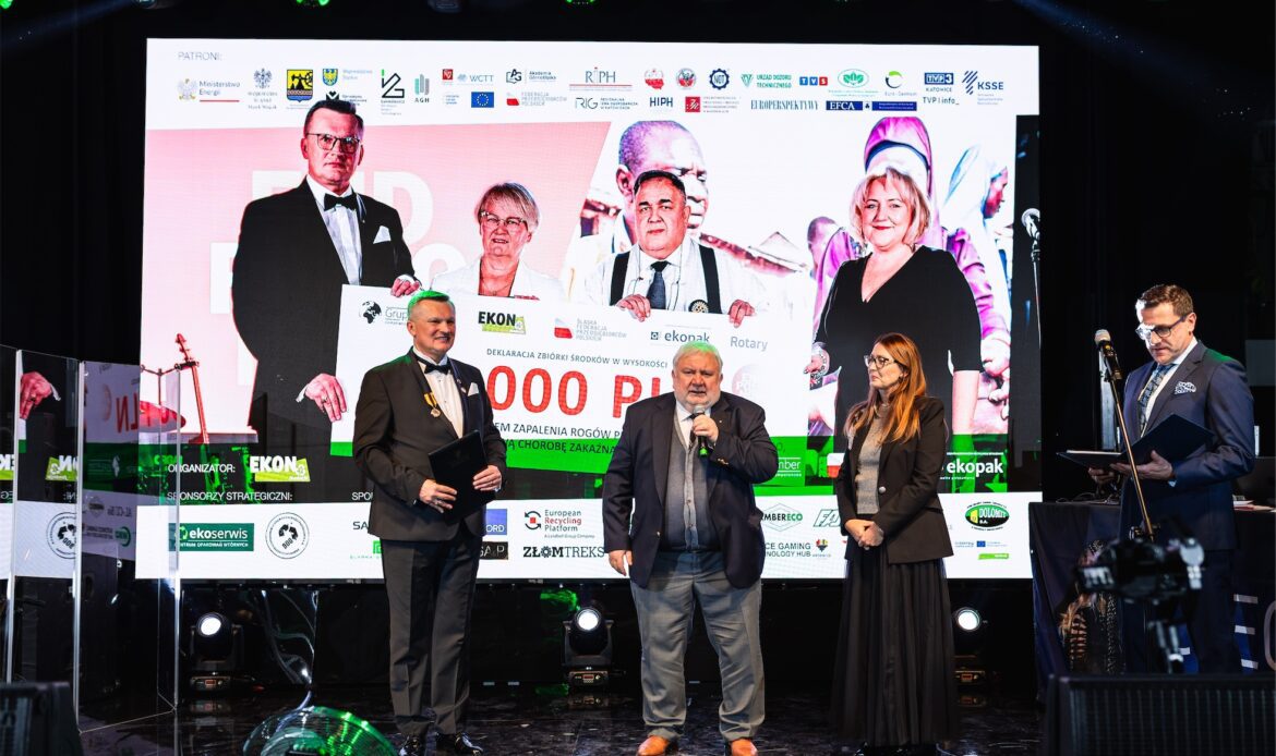 Wieczór miał jednocześnie wymiar symboliczny, ponieważ świętowano 10-lecie działalności Fundacji EKON. Jubileusz ten był nie tylko okazją do świętowania, lecz przede wszystkim do refleksji nad drogą, jaką Fundacja przeszła przez ostatnią dekadę, oraz nad wpływem, jaki jej działania wywarły na świadomość społeczną, edukację ekologiczną i dialog międzysektorowy. Szczególne miejsce w historii Fundacji zajmuje 10-letnia współpraca z firmą Veolia Hazardous Waste Europe, znana wcześniej jako Sarpi Veolia, która od lat kosenkwentnie wspiera działania Fundacji w obszarze odpowiedzialnego gospodarowania odpadami i edukacji ekologicznej. Z okazji jubileuszu firma Veolia Hazardous Waste Europe została uhonorowana specjalną statuetką, stanowiącą wyraz wdzięczności za wieloletnie zaangażowanie oraz partnerskie podejście.