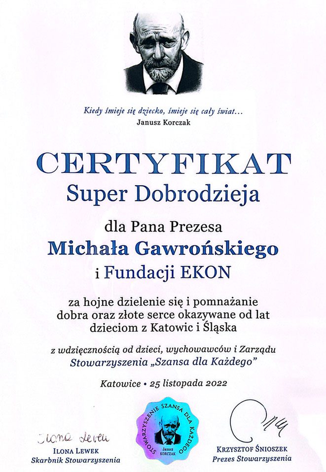 Zgromadzone wyróżnienia stanowią potwierdzenie, że podejmowane działania odpowiadają na realne potrzeby i są zauważane przez otoczenie, w którym Fundacja funkcjonuje. Jednocześnie są one dla zespołu Fundacji EKON impulsem do dalszej pracy, rozwoju kolejnych projektów oraz poszukiwania nowych rozwiązań i form wsparcia w realizacji celów statutowych.