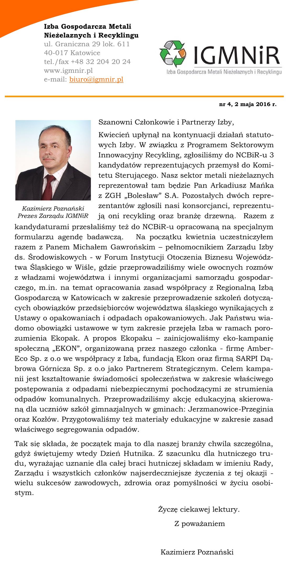 2016-05-12 Serdecznie zapraszamy Państwa do zapoznania się z Newsletterem IGMNiR. Newsletter IGMNiRPobierz Spotkanie KCRIG z EKOPAK i IGMNiR Spotkanie RIG z EKOPAK