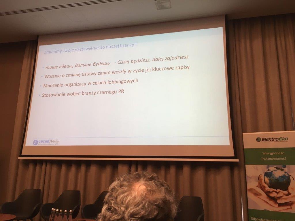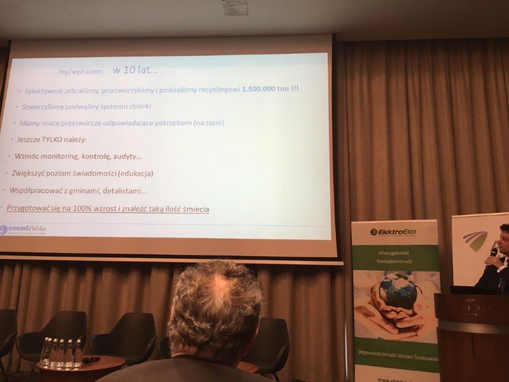 12 kwietnia 2017 r. Fundacja Ekon była uczestnikiem XII Konferencji Recyklingu Zużytego sprzętu elektrycznego i elektronicznego w Warszawie.Panel dyskusyjny miał za zadanie odpowiedzieć na pytanie czy rynek zbierania i przetwarzania ZSEE jest gotowy na wdrożenie strategii i kierunków wyznaczonych przez gospodarkę w obiegu zamkniętym. Zastanawiano się czy ten fakt będzie zagrożeniem czy wielką szansą dla tej branży. Uczestnicy potwierdzili konieczność zwiększenia nakładów na edukacje, wyznaczenia i przyjęcia standardów oraz określania właściwego poziomu finansowania systemu. Oczywiście jednym z punktów dyskusji była walka z szarą strefą i konieczna zmiana przepisów eliminujących niekorzystne zjawiska. W dyskusji uczestniczyli m. in. Andrzej Arendarski – Prezes KIG, Łukasz Sosnowski – Ministerstwo Rozwoju, Grzegorz Skrzypczak – Prezes ElektroEko, Dariusz Piontkowski – Przewodniczący Podkomisji stałej sejmu ds. monitorowania gospodarki odpadami, Izabela Szadura – Dyrektor Departamentu Kontroli Rynku GIOŚ oraz wielu innych renomowanych przedstawicieli tego środowiska. Z ramienia Fundacji EKON uczestnikiem konferencji był Michał Gawroński, Przewodniczący Rady.
